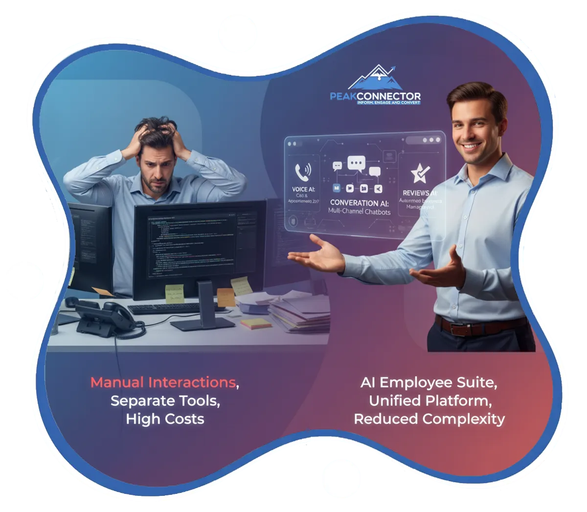 PeakConnector centralizes all customer communications - SMS, email, Facebook Messenger, Instagram, WhatsApp, Google My Business messaging, and voice calls - in one unified inbox.