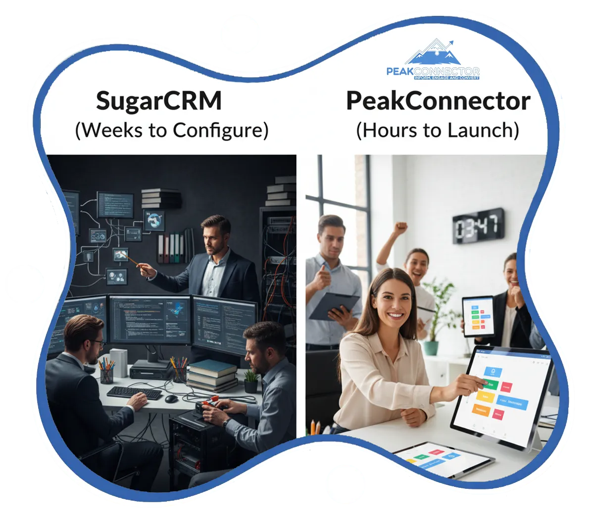While SugarCRM offers extensive customization capabilities through their Sugar Studio and SugarBPM tools, the platform requires significant technical knowledge to fully leverage these features. Industry reports indicate that many businesses struggle with SugarCRM's learning curve, often requiring expensive consultants or dedicated IT resources. PeakConnector takes a different approach, providing drag-and-drop simplicity that allows business owners to customize workflows, create funnels, and automate processes without any technical expertise. Where SugarCRM might take weeks to configure properly, PeakConnector users are typically up and running within hours.